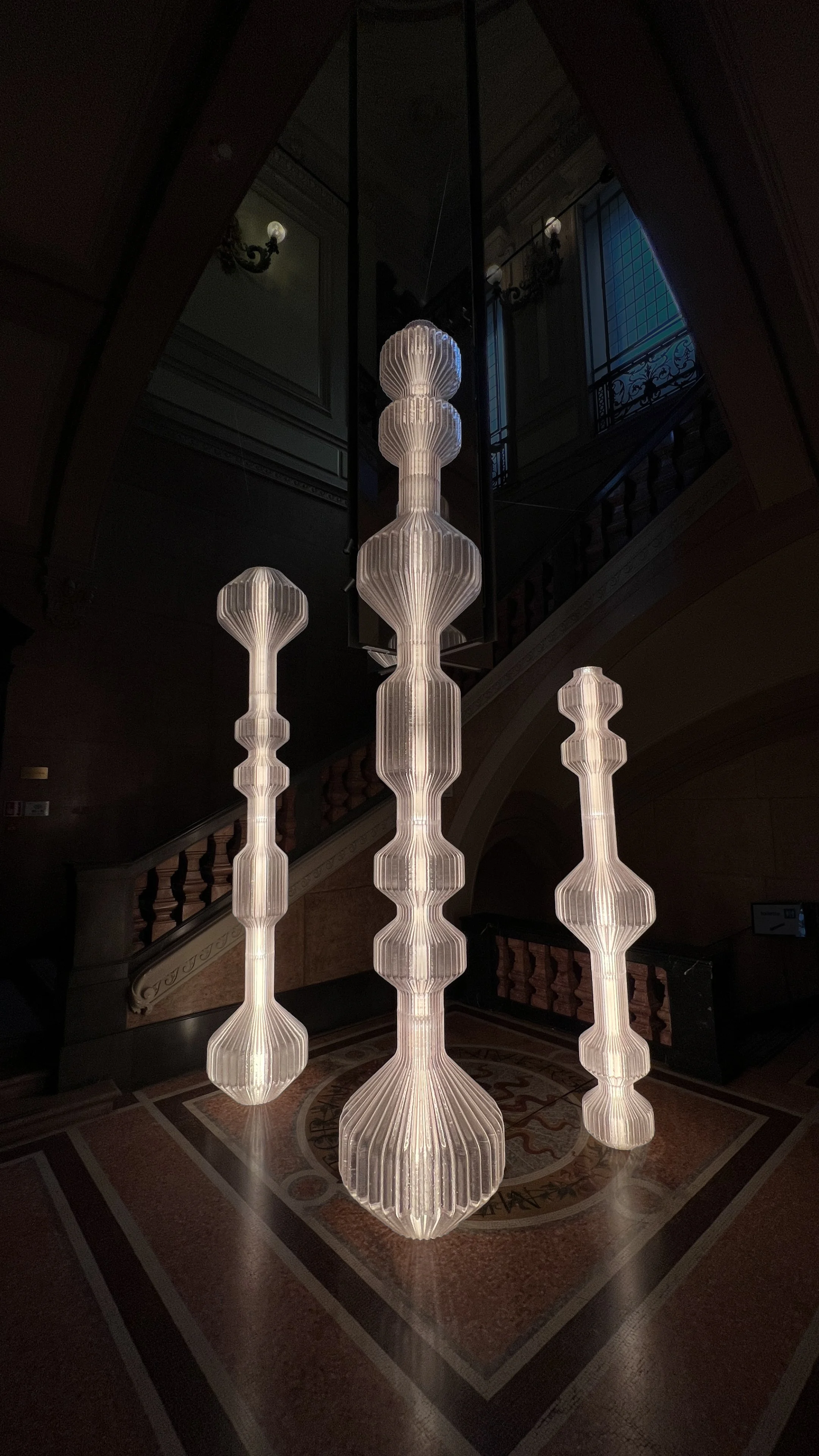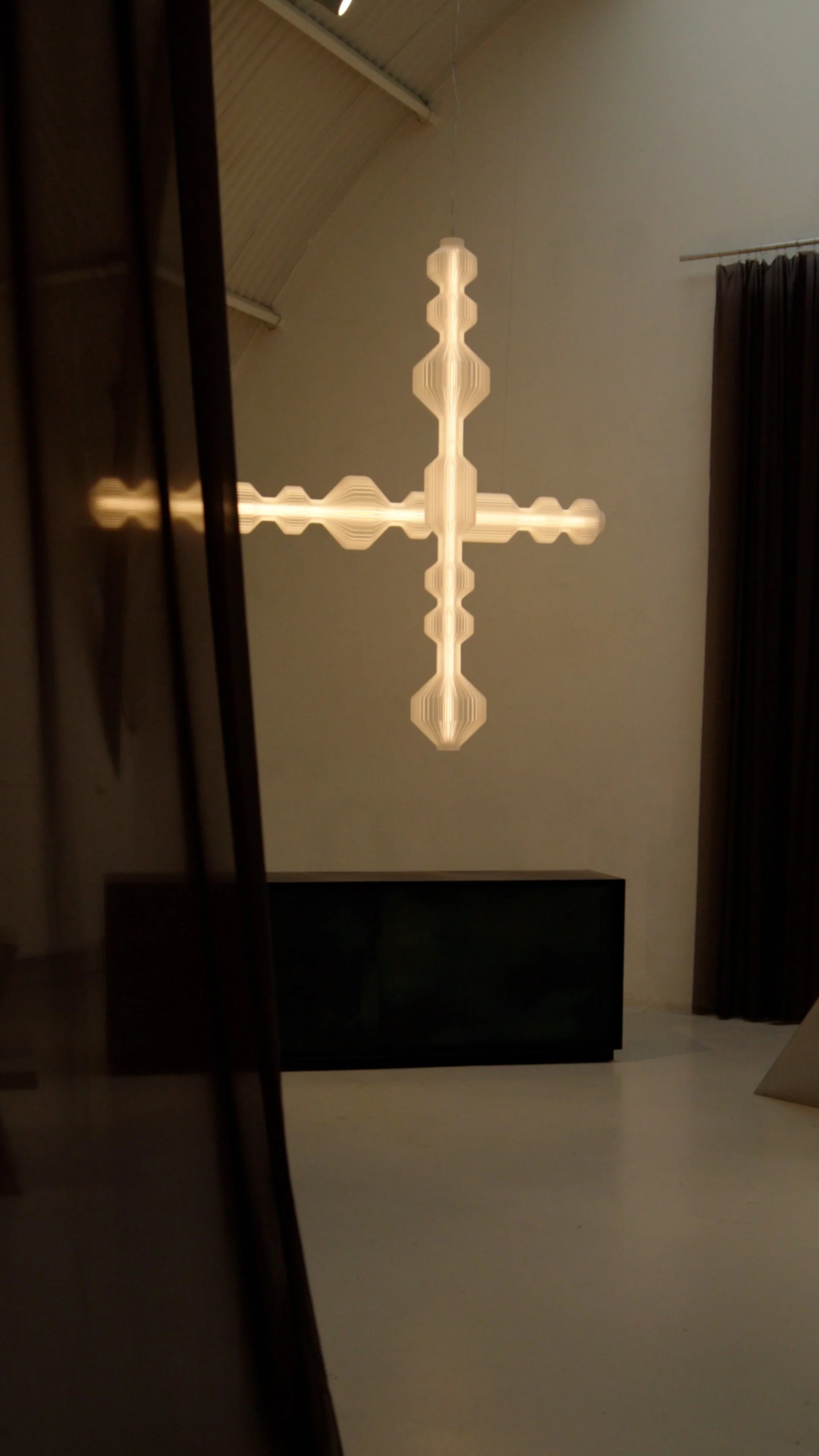His work is specialized in the design of lights through 3D printing with reclaimed or bio-sourced plastics.
